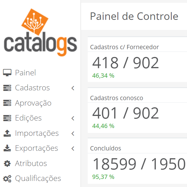 Permite um controle absoluto sobre todos os cadastros com controles de tempo e de etapas, acabando de vez com a ida e vinda de planilhas, imagens e outros arquivos entre cliente e fornecedor. Uma vez concluído o processo de captação e validação das informações, permite ainda complementação e enriquecimento das informações, permitindo que o produto, rapidamente, tenha condições de ser disponibilizado nos canais de venda.